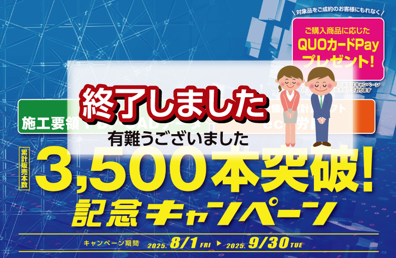 <終了しました>施工要領 PDF・CADデータ& eco労師 累計販売本数3,500本突破!記念キャンペーン(9/30まで)
