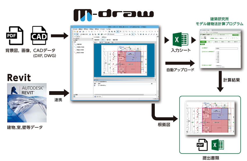 M-drawは、省エネ適合性判定の届出、BELS 取得に活用できるモデル建物法に対応した省エネ計算支援ソフトウェアです。